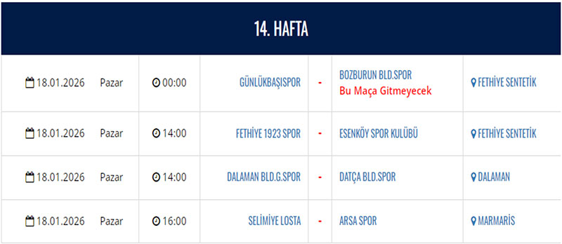 Muğla 2. Amatör Lig C Grubu puan durumu ve fikstür