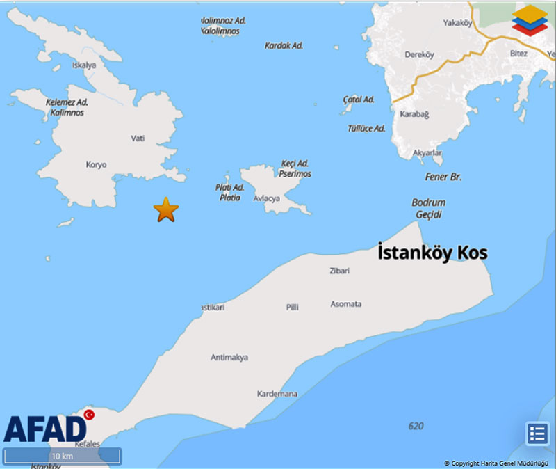 Yunanistan'ın Kalimnos ve Plati adalarıyakından denizde 04.53 ve 04.55 saatlerinde yaşanan depremler, Bodrum'da da hissedildi. İlk deprem 9,2 kilometre, ikinci deprem ise 7,22 derinlikte meydana geldi.