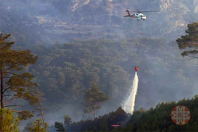 Menteşe Mahallesi'nde başlayan ayngın yaklaşık 40 saati geride bırakırken mücadele de devam ediyor. Turnalı bölgesinde başlayan ve Kıran Mahallesi istikametine dik yamaçlarda ilerleyen yangın söndürme çalışmalarına yüzlerce kişilik ekipler havadan ve kardan müdahale ediliyor.