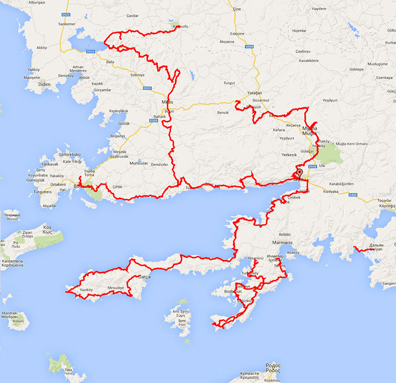3The Carian route is 46. There are stages on this page. You can choose one and walk. However, some routes are very difficult. If you are not a professional, stay away from difficult tracks. In some places there are no settlements. Help may be too late.